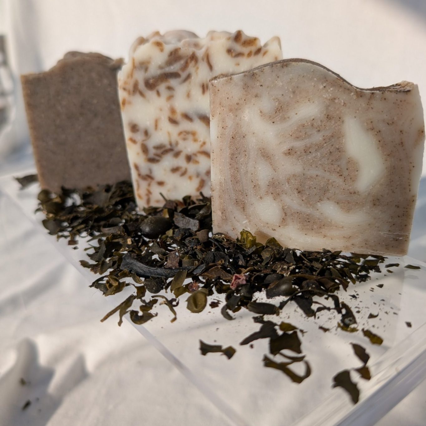 We only use quality natural ingredients. We also infuse our own oils with the botanicals and seaweeds then add these to coconut oil, shea butter, olive oil etc to make the shampoos and wax balms. All of the shampoos and wax balms aresuitable for vegetarians, and most are suitable for vegans (some of the wax balms contain beeswax). Most of the soaps are made completely from vegetble or botanical ingredients but we do offer a small range of traditional Lard based soaps for those that like them.